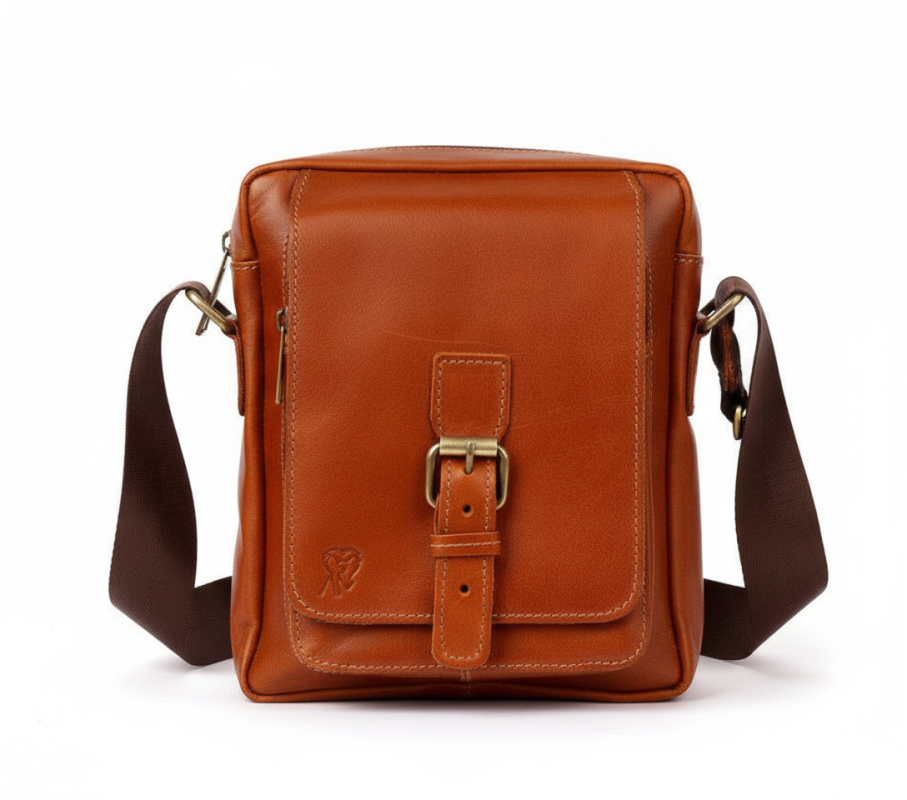 شنطة كروس رجالي جلد طبيعي بقري كامل غير معالج بقفل مغناطيسي وبكلة – صناعة يدوية مصرية لون هافان