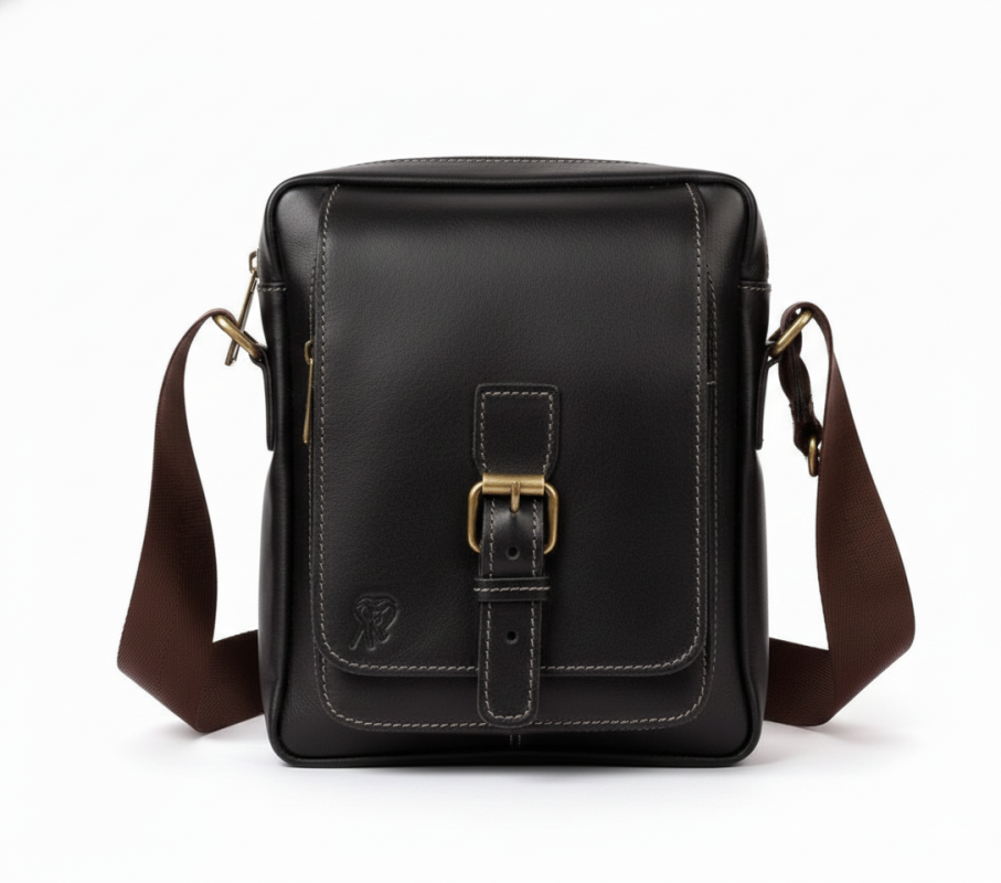 شنطة كروس رجالي جلد طبيعي بقري كامل غير معالج بقفل مغناطيسي وبكلة – صناعة يدوية مصرية لون اسود