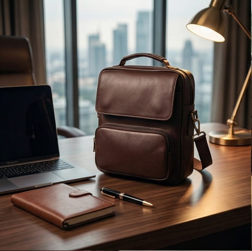 شنطة جلد طبيعي 100% – تصميم عملي يناسب العمل اليومي وحمل اللاب توب أو التابلت