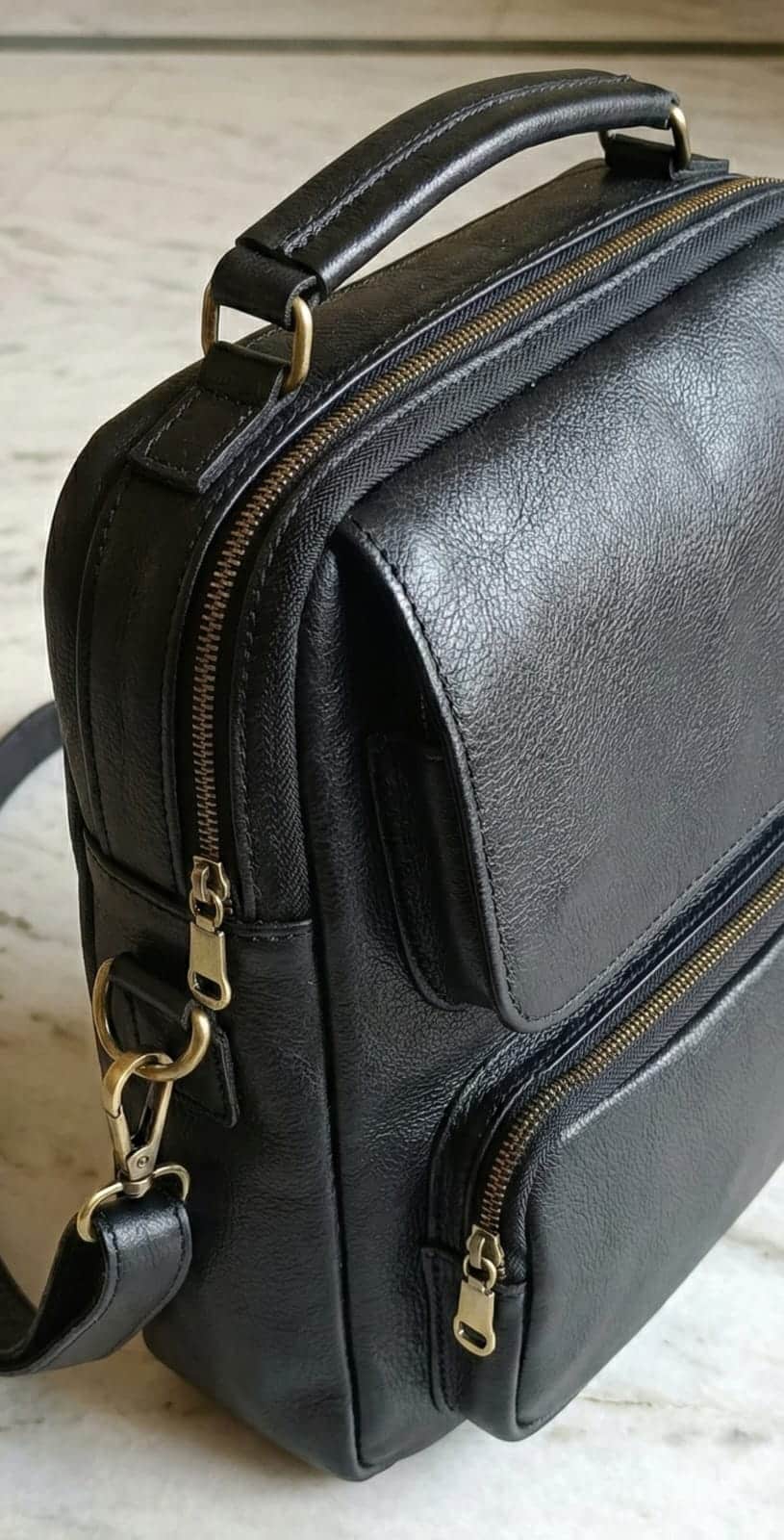 شنطة جلد طبيعي 100% – تصميم عملي يناسب العمل اليومي وحمل اللاب توب أو التابلت لون اسود في هافانا